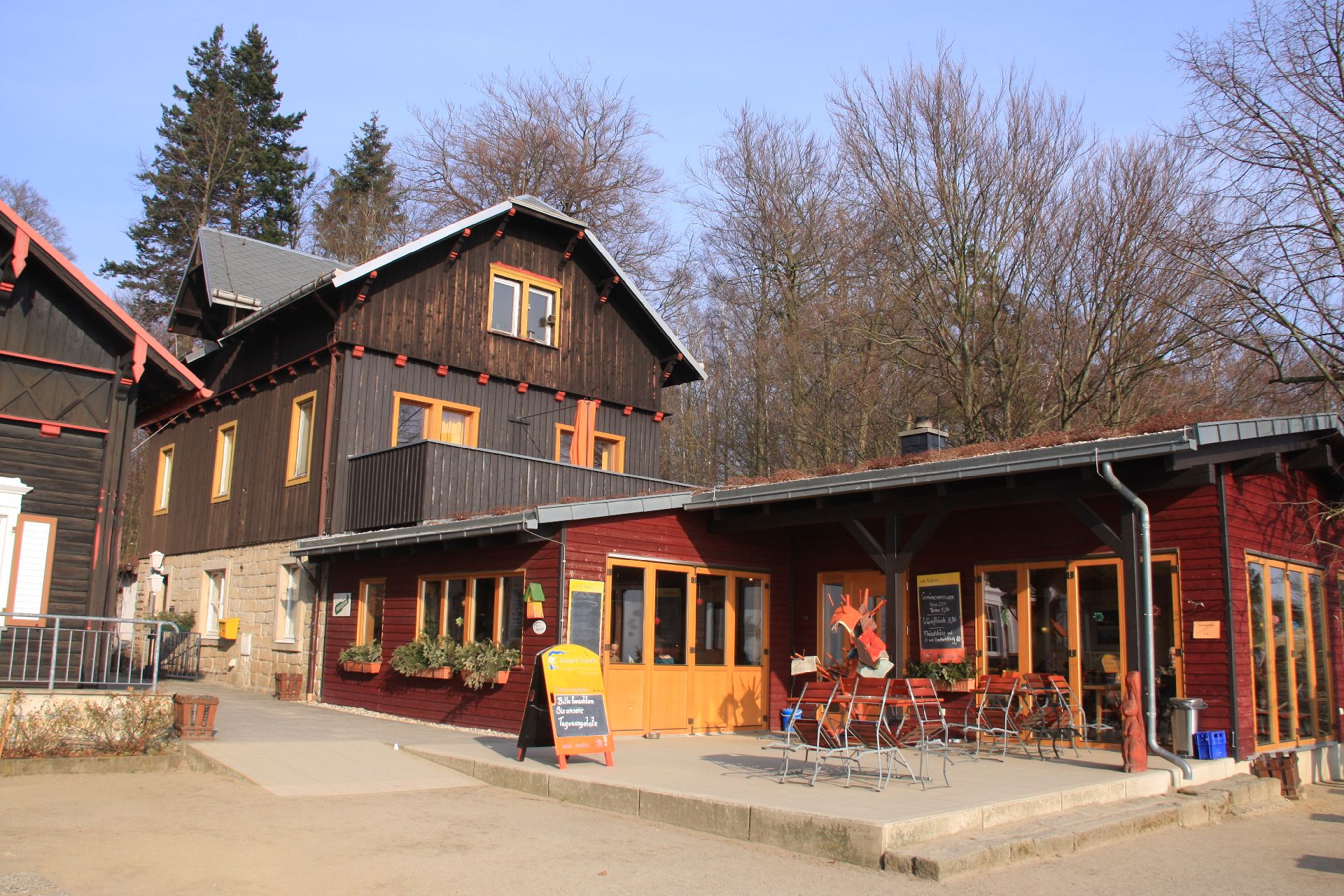 Er liegt fast auf dem gleichen Höhenniveau wie der Ort Hohnstein. Zur Brandbaude führt ein ebenerdiger Weg, deshalb ist dieser auch gut für ältere oder gehbehinderte Menschen geeignet. Oder nutzen Sie in den Sommermonaten die zwischen Hohnstein und der Brandbaude verkehrende Pferdekutsche. Nicht nur ein Erlebnis für Kinder.