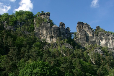 Die Bastei ist eine direkt an der Elbe oberhalb von Rathen liegende Felsgruppe, welche das bekannteste Ziel für Touristen ist. Trotz des schon mal recht regen Treibens ist es einen Besuch wert. Der Aufstieg zur Bastei und die sich daran anschließenden Steinbrücken entlohnen den Besucher mit fantastischen Blicken ins Elbtal.