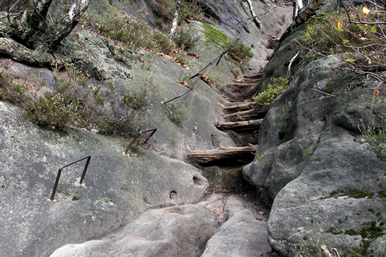 In wohl kaum einem anderen Gebiet der Sächsischen Schweiz werden Sie eine höhere Dichte an Aufstiegen jedwedem Schwierigkeitsgrades auffinden können. Die hier als Stiegen bezeichneten Wege und Klettersteige variieren zwischen einfachen steilen Wegen (z.B. Wurzelweg, Wilde Hölle), langen Treppenaufstiegen (z.B. Aufstieg zur Schrammsteinaussicht, Heilige Stiege, Lehnsteig) bis hin zu teilweise mit Eisen gesicherten Klettersteigen (z.B. Häntzschelstiege, Starke Stiege, Rotkehlchenstiege uvm.), wobei bei letzterem der Übergang zum Klettern oft fließend ist. Somit können Sie Ihrer Entdeckung des Gebiets eine für Sie passende Mischung aus Auf- und Abstiegen zusammenstellen.
