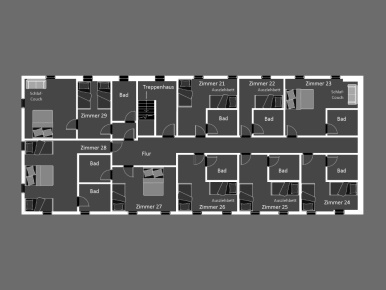 Im Erdgeschoss befinden sich eine auch für Rollstuhl geeignete Familienwohnung mit 2 Zimmern mit eigenem Bad sowie die Gruppenräume. Gleich neben dem Saal können Sie Ihre Kochkünste in der geräumigen Selbstversorgerküche unter Beweis stellen. Weiterhin befinden sich Toiletten und ein Lagerraum im Erdgeschoß.