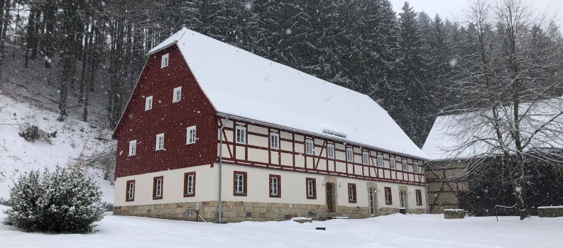 Bald ist es soweit! Im Frühjahr 2019 wird das liebevoll sanierte Bauernhaus unseres Ferienhofes eröffnet. Das Haus wird Ihnen in 8 Zimmern und 2 Familienzimmern mit zwei Räumen Platz für bis zu 34 Personen bieten. Alle Wohneinheiten sind jeweils mit einer modernen Dusche und WC ausgestattet. Der ehemalige Stall des Bauernhauses wurde aufwändig saniert und wird Ihnen als Gemeinschaftsraum zur Verfügung stehen. Die aufgearbeiten Sandsteinwände, die Gewölbedecke und raffinierte Lichttechnik verleihen dem Raum eine ganz besondere Atmosphäre. Daran ist ebenfalls die modern ausgestattete und großzügig angelegte Selbstversorgerküche angeschlossen - alternativ vermitteln wir Ihnen gern hervorragende Cateringdienstleister aus der Region. Für Klein und Groß steht zudem ein großzügiger Aussenbereich zum Spielen, Grillen oder einfach nur zur Entspannung am abendlichen Lagerfeuer zur Verfügung.