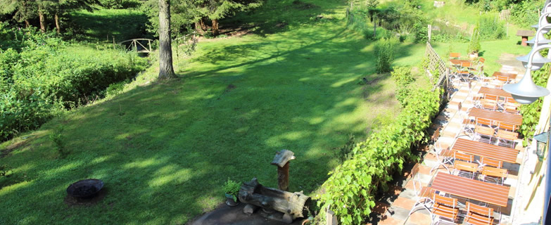 Die Aussenanlagen bieten reichlich Platz für vielerart von Zerstreuung. Dem Bewegungsdrang kann auf der großzügigen Wiese und am Bach nachgegangen werden. Wer's ruhiger mag, findet tagsüber einen Platz zum Entspannen auf der Sonnenterasse und am hauseigenen Teich oder abends in geselliger Runde an der Feuerschale. Der stets munter plätschernde Bach und die Athmosphäre des nahen Waldes leisten Ihren Beitrag zu Ihrem erholsamen Aufenthalt in der Grundmühle!