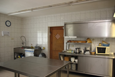In unserer modernen Küche finden Sie alle notwendigen Geräte und Einrichtungen. Von der Kaffeemaschine bis zur Profi-Spülmaschine ist die Küche auf die Versorgung Ihrer Gruppe ausgelegt, sodass Ihrer Fantasie keine Grenze gesetzt ist - vom einfachen Frühstück bis zum mehrgängigen Dinner ist alles möglich.