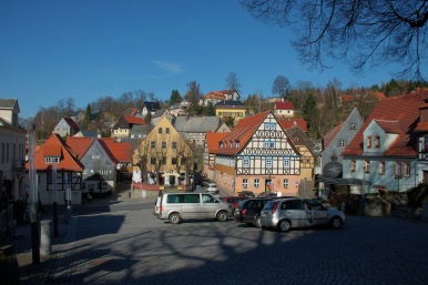 Verbinden Sie Ihre Wanderung durch den Nationalpark mit einem kleinen Stadtspaziergang. Vom oberen Teil des Ortes hat man einen wunderschönen Blick auf Teile der Stadt mit seinen alten Häusern, wie hier vom Markt aus. Die rustikalen Gaststätten des Ortes laden ebenso zum Verweilen und Genießen ein. Gut zu wissen: Die Stadt ist ein staatlich anerkannter Erholungsort. Mehr Informationen finden Sie auf http://www.hohnstein.de.